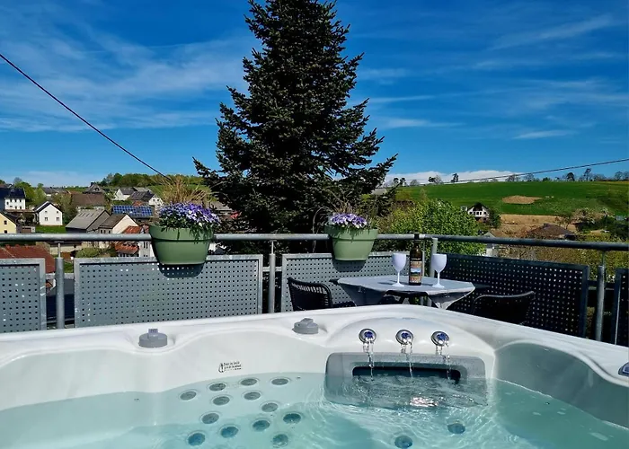 Staying at the 2-bedroom Wellnesshaus Dorfblick Mit Outdoor-Jacuzzi Und Infrarotkabine, Neu! Dreis-Bruck villa, guests can easily reach Raders-Berg, located approximately 25 minutes' walk away. The property includes free private parking and a terrace with views of the garden.